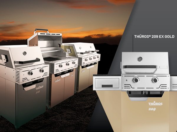 THÜROS Gasgrills - Edelstahl in vier Farb-Editionen.