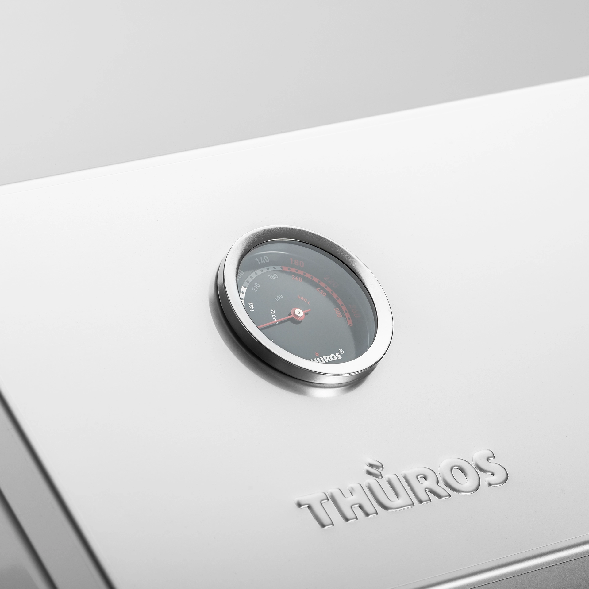 Die neue THÜROS Schwenkhaube hebt Ihr Grillvergnügen auf ein neues Niveau! Dank ihres vergrößerten Innenraums, der zweifach verstellbaren Grillrost-Ablage und des ergonomischen Griffs vereint sie maximale Funktionalität mit einem modernen, hochwertigen Design. Perfekt für alle, die das Beste aus ihrem THÜROS T3 (ab Modelljahr 2017) oder THÜROS T30 herausholen möchten.